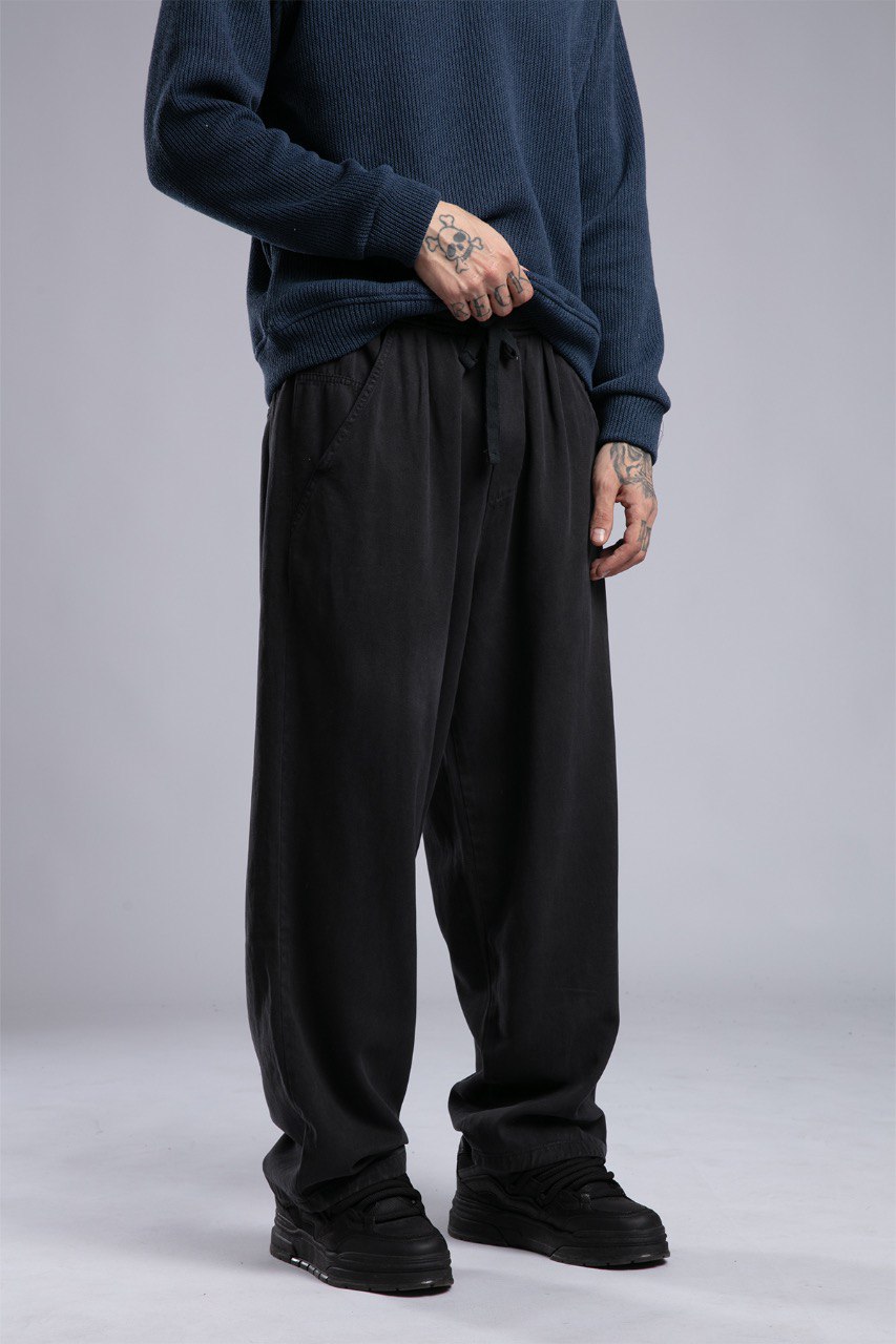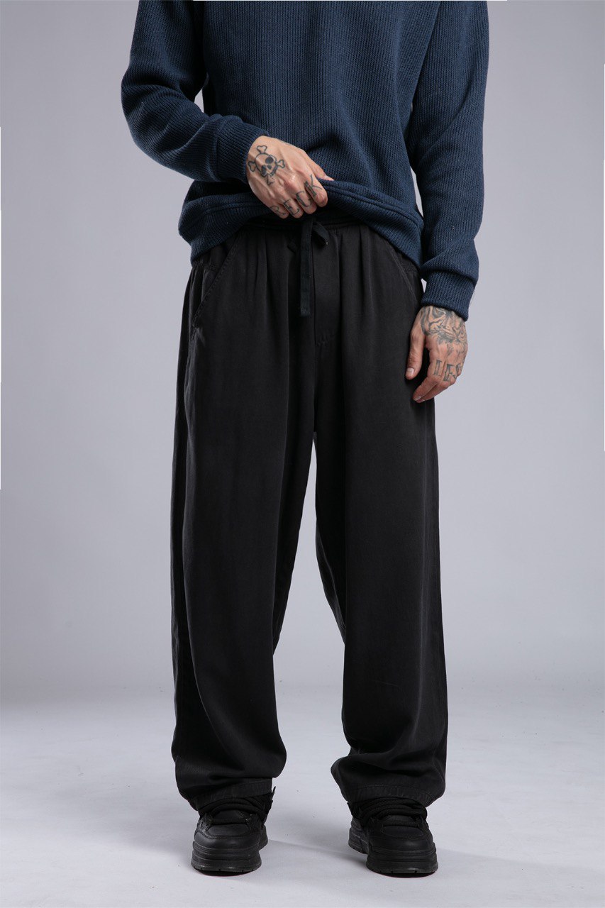 Brown jogger pants with elastic waist, casual alternative to chinos.